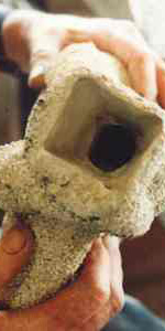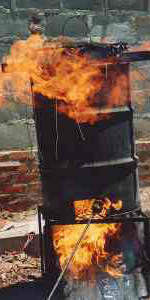 This is the melting away of the wax. This must be a hot and quick process. A New Zealand friend of mine holds the shell in one hand and the gas torch in the other. This entails too much risk of being burned, so I prefer an oil drum and a large gas torch – a lot safer!
